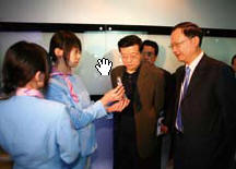 国资委副主任李伟(中)在中国移动通信总裁王建宙(前右)陪同下检查工作