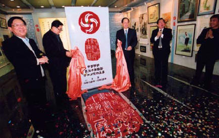 贵(左二)为员工书画、摄影、手工才艺作品展揭幕