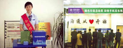 目前,国内废弃手机数量巨大,并且对环境造成潜在威胁。在国内没有健全的回收市场、没有良好的处理模式的背景下,2005年12月,中国移动通信联合摩托罗拉和诺基亚,共同启动了“绿箱子环保计划——废弃手机及配件回收联合行动”。